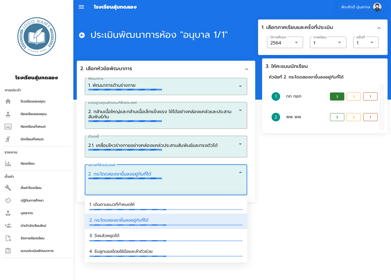 "ครูแคร์" ช่วยคุณครูบันทึกพัฒนาการของนักเรียนได้ครอบคลุมทั้ง 4 ด้าน ร่างกาย จิตใจ อารมณ์ สังคม สติปัญญา คำนวณผลประเมินให้อัตโนมัติ ในรายภาคเรียนและ ปีการศึกษา พร้อมที่จะแจ้งเตือนให้คุณครูประเมินครบ 2 ครั้งในแต่ละภาคเรียน