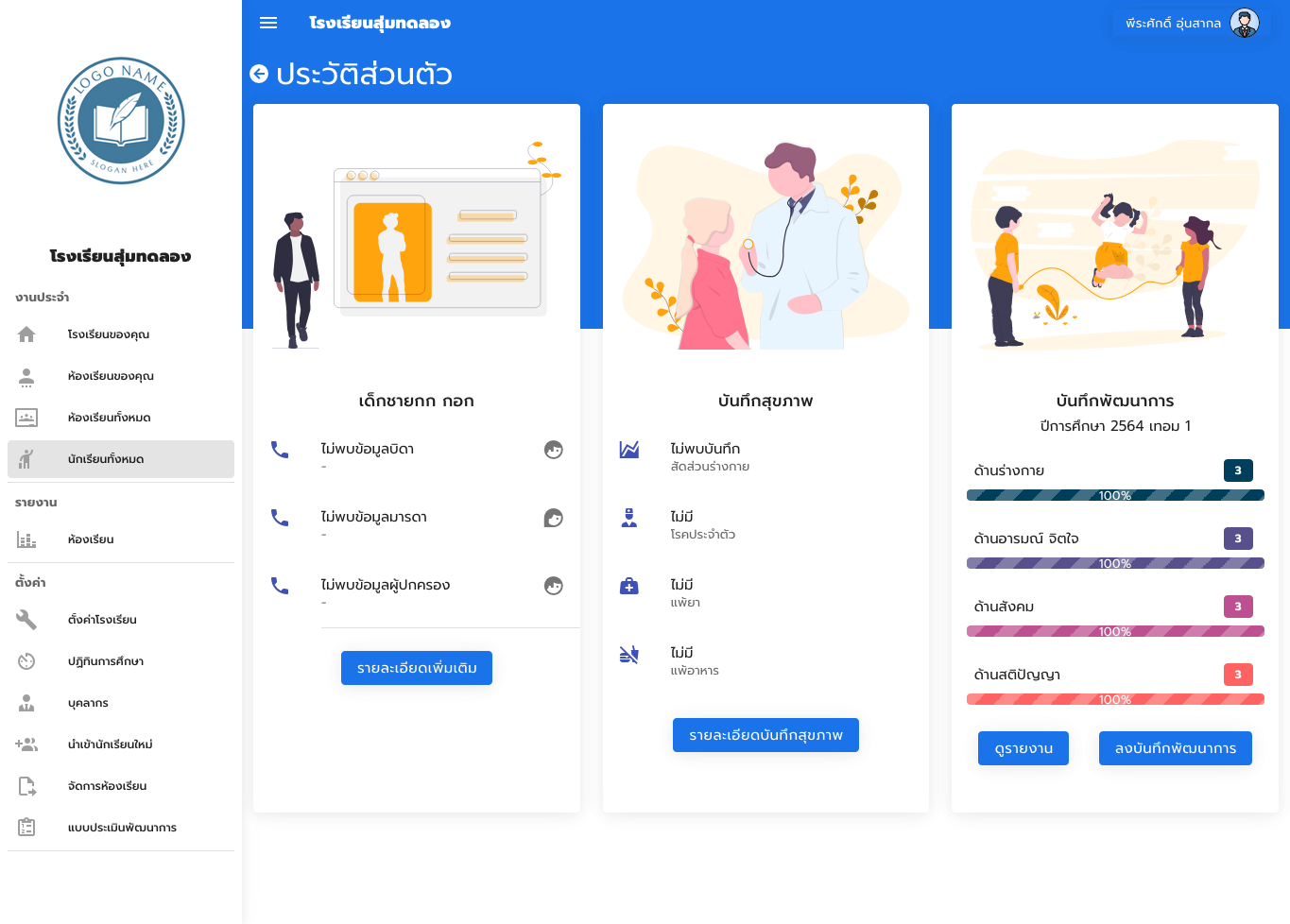 ครูแคร์ พร้อมรายงานผลข้อมูลได้ทันทีทั้งข้อมูลการเข้าเรียน ข้อมูลพัฒนาการนักเรียน ในสถานศึกษาของท่านและสนับสนุนการทำงานของคุณครูได้อีกด้วย