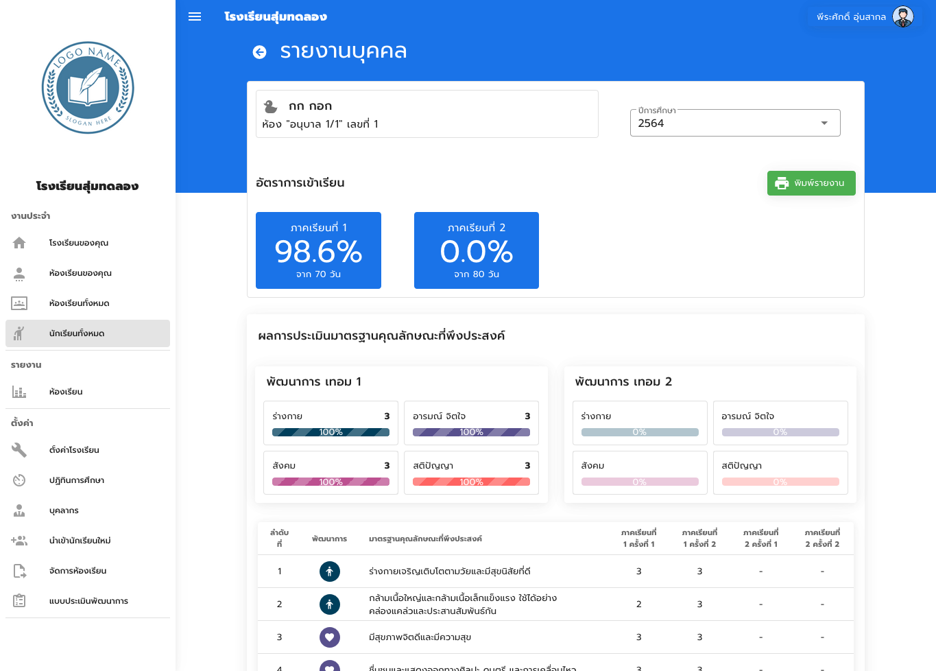 "ครูแคร์" จะแสดงข้อมูลสำคัญในโปรแกรม ทั้งอัตราการมาเรียน ผลการประเมินพัฒนาการ และความคืบหน้าของการบันทึกผล พร้อมทั้งจัดทำรายงานรูปเล่มให้โดยอัตโนมัติ ไม่ว่าจะเป็น